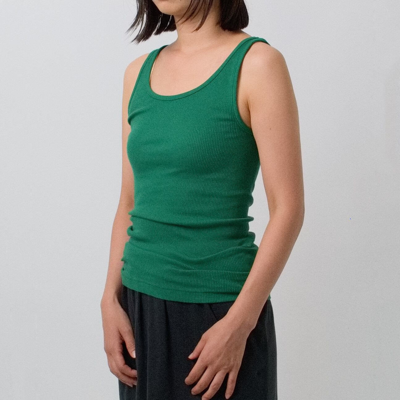 型はクルーネックタイプのタンクトップです。